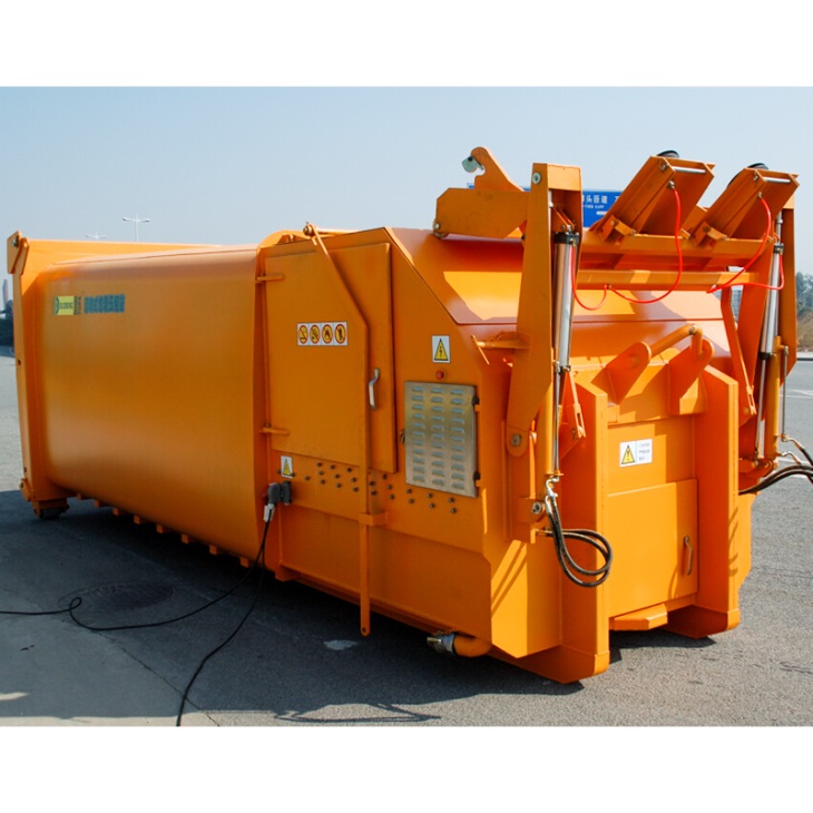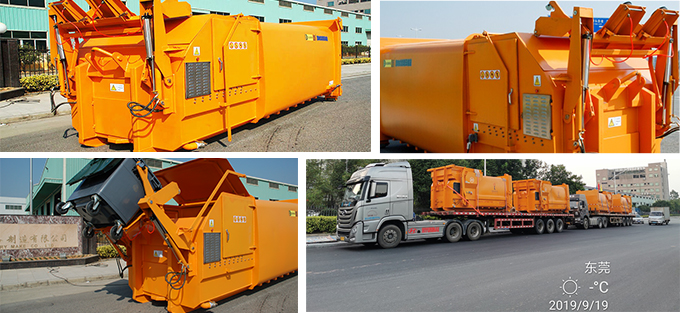 ? ? ? ?達(dá)成掛斗式連體垃圾壓縮箱是壓縮機(jī)和箱體合二為一的連體機(jī),投料口的密封蓋與翻斗架實(shí)行聯(lián)動(dòng),垃圾倒 入投料后,投料口密封蓋立即自動(dòng)閉合,從而保證垃圾和灰塵不外溢,掛斗式的翻斗架適用于國(guó)際通用的120L·1100 雙輪、四輪垃圾收集桶。